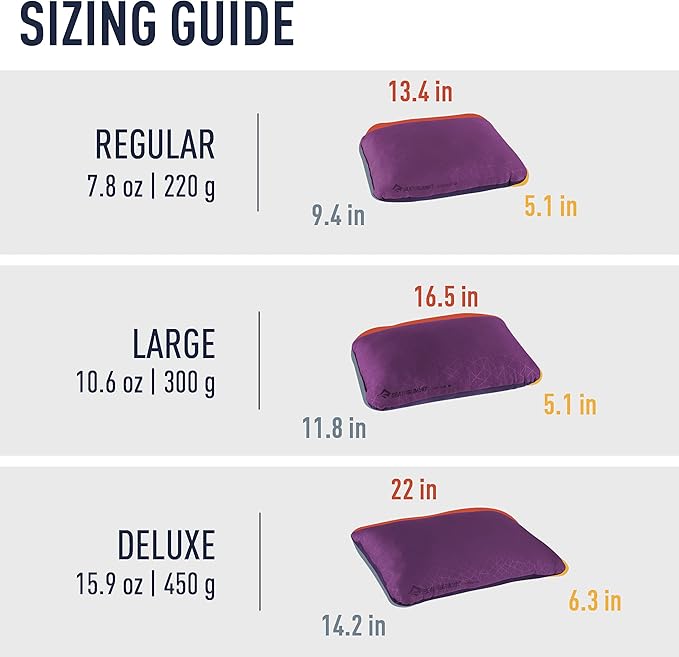 - Regular size pillow measures 13.4 x 9.4 x 5.1 inches, packs to 10.6 x 3.9, and weighs 7.8 ounces; compatible with PillowLock patches on sleeping mats