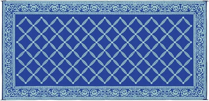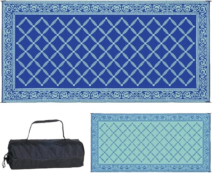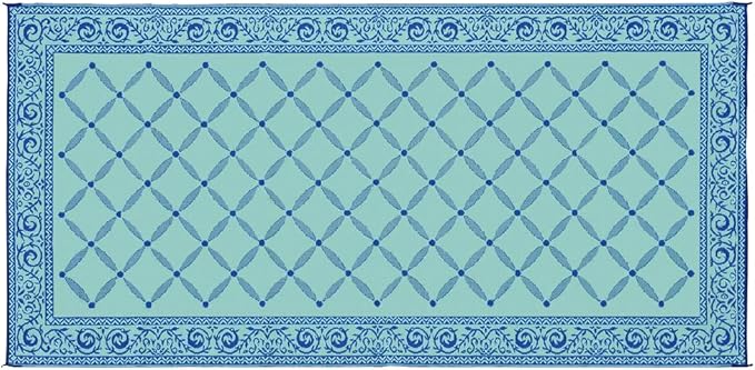Stylish Camping 119183 9-feet by 18-feet Reversible Mat, Plastic Straw Rug, Large Floor Mat for Outdoors, RV, Patio, Backyard, Picnic, Beach, Camping (Blue/Light-Green)