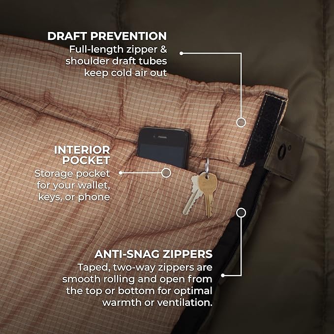 - STAY WARM: Rain or shine, you'll be warm and rested in this sleeping bag. Innovative fiber fill; double-layer construction and draft tubes work together to keep the cold out and the warmth in. 5 Star comfort on all your outdoor adventures