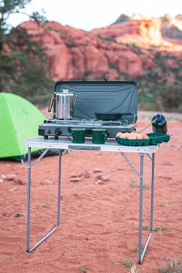 “This folding table is way sturdier than I expected. It’s lightweight but holds a lot, and it packs down small — perfect for car camping.”