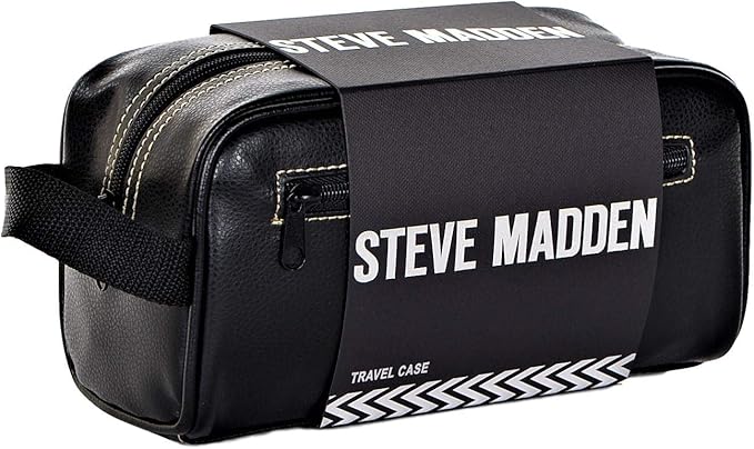 - EXCELLENT STORAGE MEN'S TOILETRY BAG – Steve Madden Mens Vegan Leather Toiletry Bag Travel Kit organizer helps keep your personal items organized featuring one large top zippered pocket, and exterior zippered pocket and an internal zippered pocket.