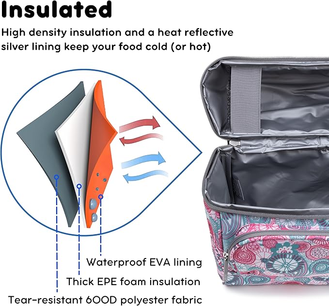 - Insulated — High density insulation and a heat reflective silver lining keep your food cold (or hot) in this thermal lunch bag