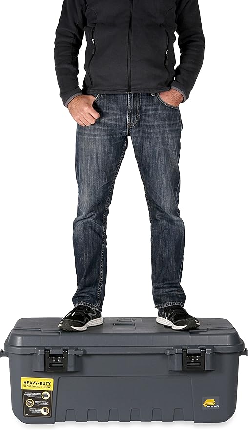 - PLANO SPORTSMAN STORAGE TRUNK WITH WHEELS: Store or take your tools, hunting gear, ammunition, camping supplies, and more on the go with the Plano Sportsman Trunk with Wheels. With a 108-quart total capacity, the possibilities are endless.