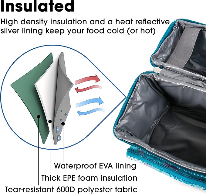 - Insulated — High density insulation and a heat reflective silver lining keep your food cold (or hot) in this thermal lunch bag