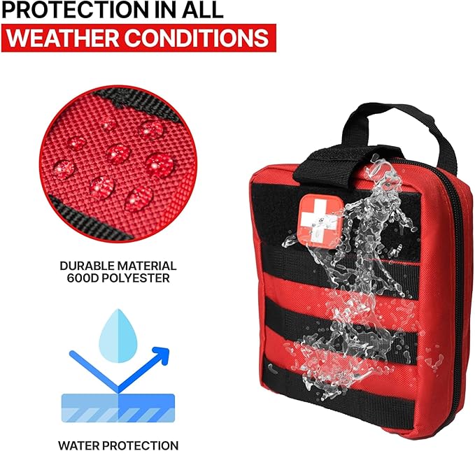 - BUILT FOR RAPID REMOVAL - Molle pouches Rip Away hook and loop panel feature and a wide handle for rapid removal makes first aid molle pouch a sp to render first aid quickly. Our heavy duty military grade IFAK Molle Medical Pouch is made from 600D polyester material. The is reinforced and double stitched at all stress points. The closures are secured by high quality YKK zippers with nylon pulls that are rust resistant and tough.