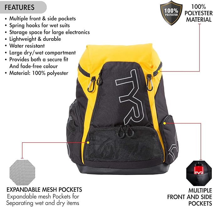 TYR Alliance Backpack, Black/Gold, 45 Liter
