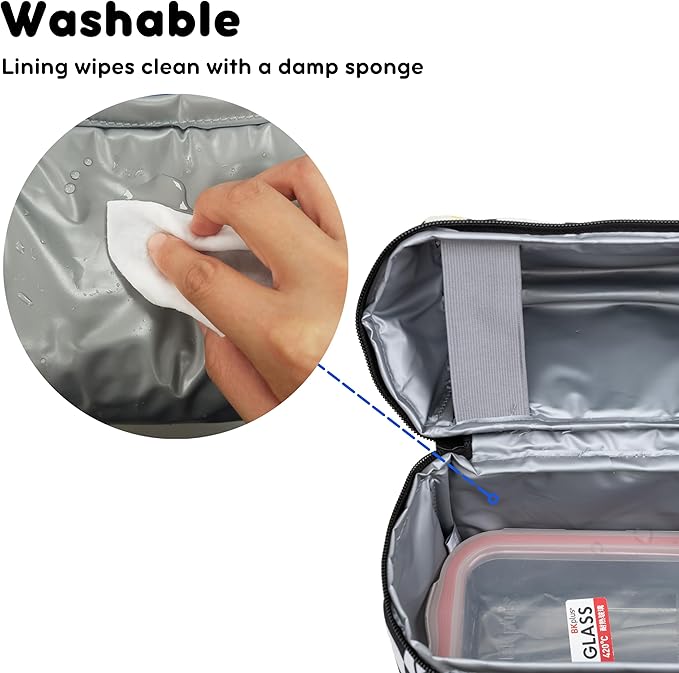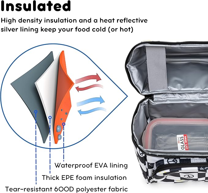 - Insulated — High density insulation and a heat reflective silver lining keep your food cold (or hot) in this thermal lunch bag