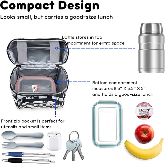 J World Corey Kids Lunch Bag. Insulated Lunch-Box for Boys Girls, Icon Checkers