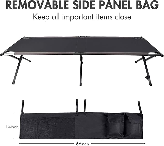 PORTAL Folding Portable Camping Cot, Guest Bed with Carry Bag and Side Storage Organizer, Camping Cots for Adults Sleeping, Away Tent Sleeping Cot Bed, Supports 300 LBS, Black