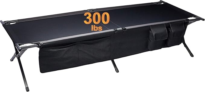 - PERFECT SIZE AND WEIGHT CAPACITY: With a weight capacity of 300 lbs., this camping cot measures 41.73" x 8.86" x 5.71" when collapsed and a generous 82.68” x 31.5” x 18.9” when fully assembled, providing a comfortable sleeping surface for adults of all sizes.