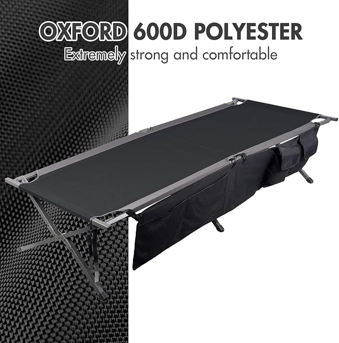 - STURDY CONSTRUCTION: Built for the outdoors, this camping bed is constructed with a powder-coated steel frame that resists rust, corrosion, and abrasion, and an oxford 600D polyester canvas. It's made to withstand the elements, making it a reliable choice for your outdoor adventures.