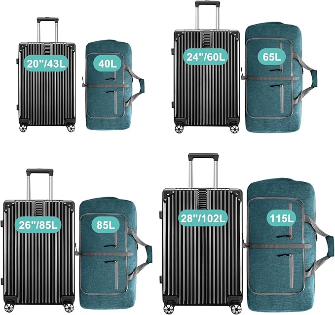 - Foldable and Spacious travel bag:The travel organizer bag can be folded into a really small size taking up so little space but opens up to have about 85L capacity of travel bags to use as a luggage bag in case that your suitcase swells. This travel duffel bag is designed to work best with bag packing cubes - to give you an organized lightweight travel experience.