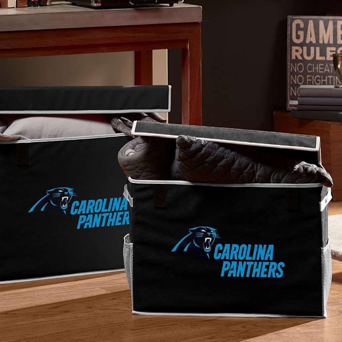 - CAROLINA PANTHERS STORAGE FOOTLOCKER: This collapsible storage footlocker bin is the perfect addition to any fan's office, bedroom, or man cave!