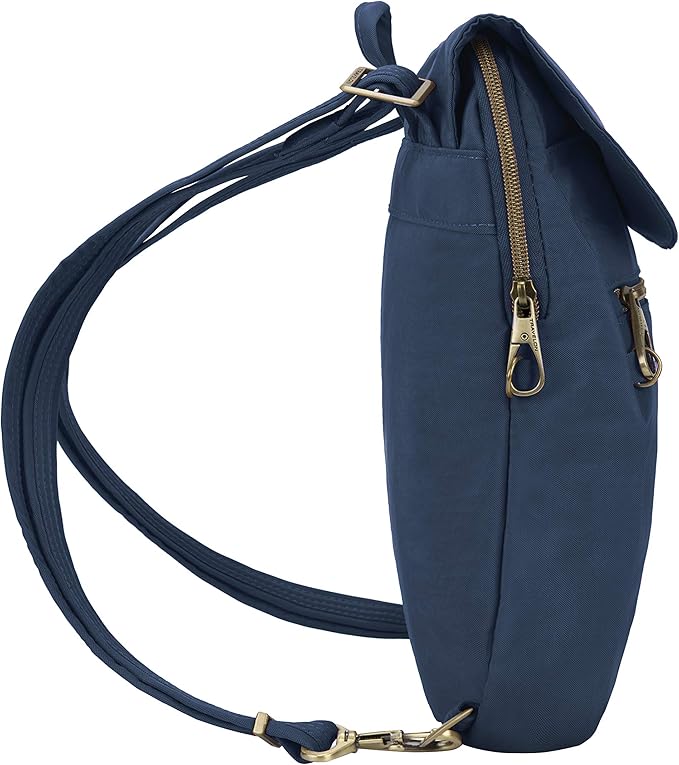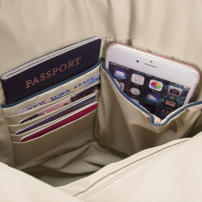 - Anti-Theft features include slash & cut resistant straps and panels, locking zippers, RFID protected card slots and Passport pocket