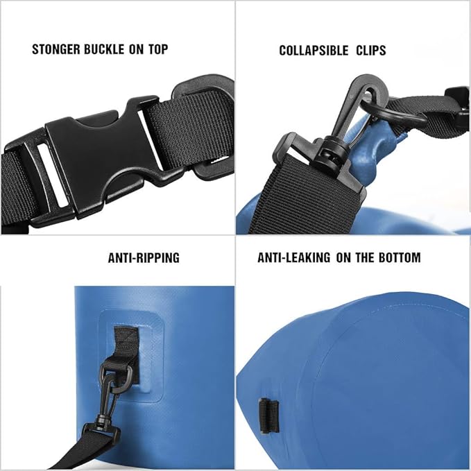 - VERSATILE AND DURABLE: You can leave the dry bag float on the water during river trip or other water sporting, no more worry about your items getting wet. The buckle and D-rings are upgraded with POM material, stronger than other traditional buckle. It will not break for frequent use