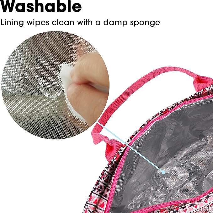- Insulated — High density insulation and a heat reflective silver lining keeps your food cold (or hot) in this thermal lunch bag