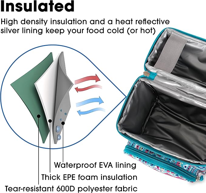 - Insulated — High density insulation and a heat reflective silver lining keep your food cold (or hot) in this thermal lunch bag