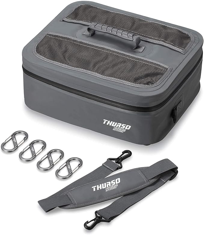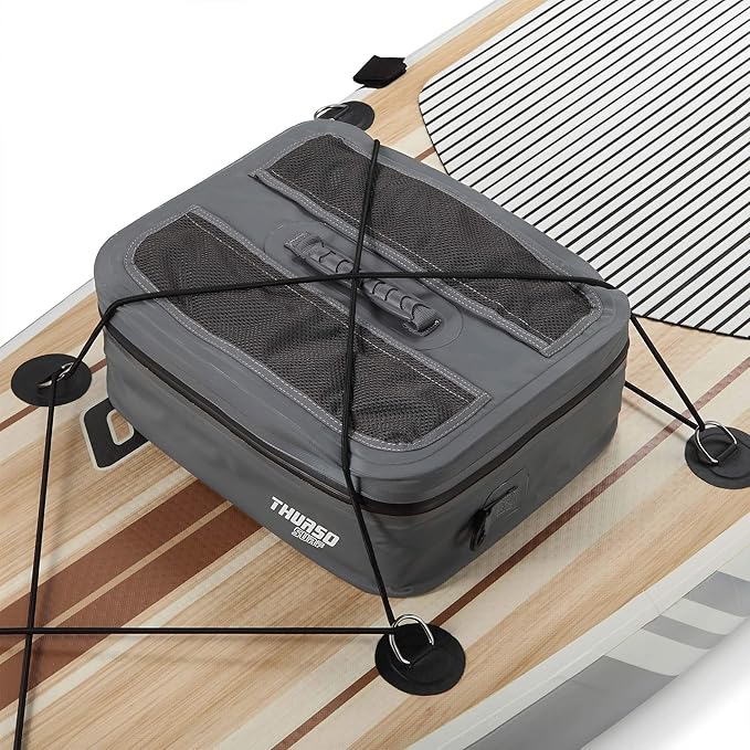 - 【Ideal PaddleBoard Accessory】The THURSO SURF paddle board deck bag easily fits 20 cans or equivalent amount of food for your multi-day excursion. Ample storage space for drinks, food, and ice packs. Additional pockets keep your items handy and organized and provide convenient access to essentials like sunscreen, sunglasses, or your phone. Size: 16'' × 12'' × 6''. Volume: 10 L.