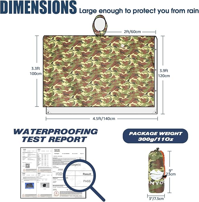 - Breathable & Comfortable: Don't worry that it will make you very hot because the arm holes & bottom are loose enough to allow air circulation.The size is large enough to cover up a backpack as well. It can help keep your backpack dry and prevent water from seeping through and damaging your items. It offers excellent freedom of movement, which makes it very comfortable to wear. Adjusting the snap fasteners on each side it can accommodate a range of body sizes and shapes.