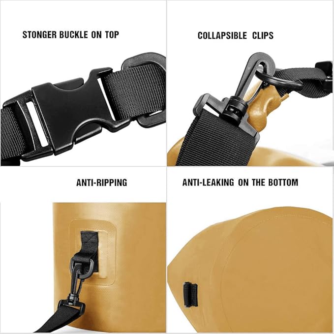 - ✅ANTI LEAK AND ANTI TEAR: Features fully welded seams by high-frequency tech, our dry sack provides a stronger and more durably waterproof construction. Abrasion resistant for long lasting, perfect for boating, fishing, paddling, swimming and hiking.