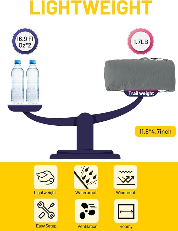 - VERSATILE ULTRALIGHT TENT: One ventilation window and full high density mesh inner tent, provide good breathability and prevent condensation from building up. It fits for trekking, mountaineering, hiking, camping and other outdoor sports