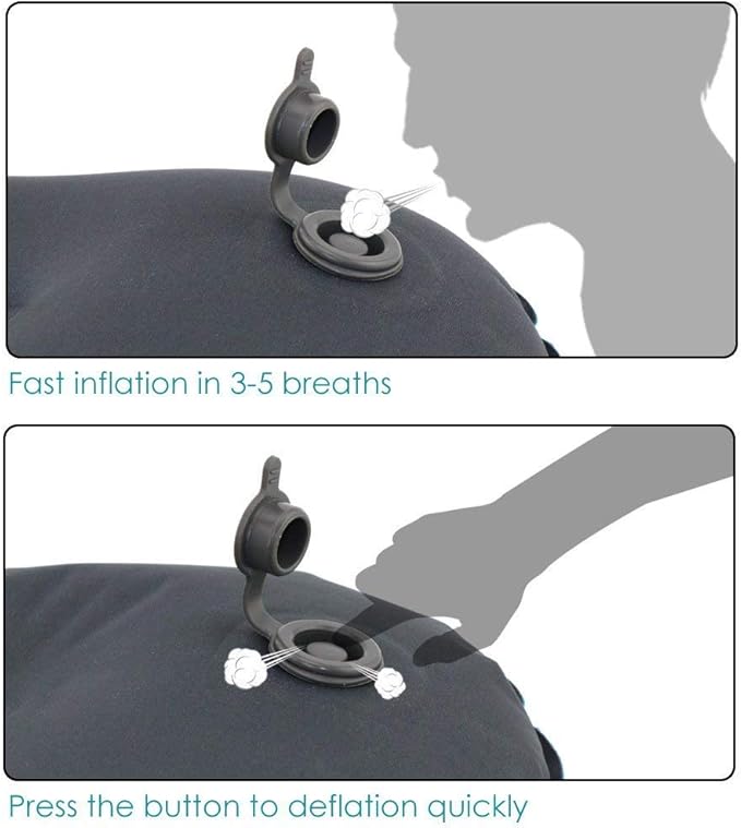 - EASE OF USE - - Inflate pillow by mouth with approximately 3-5 breaths. Once you are done you can conveniently deflate the pillow with the Quick Deflate feature which rapidly releases air after use in only seconds. With the unique technology in this compact and light pillow, you are able to adjust firmness to your personal sleep preference.