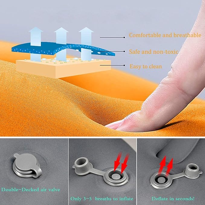 - EASE OF USE - - Inflate pillow by mouth with approximately 3-5 breaths. Once you are done you can conveniently deflate the pillow with the Quick Deflate feature which rapidly releases air after use in only seconds. With the unique technology in this compact and light pillow, you are able to adjust firmness to your personal sleep preference.