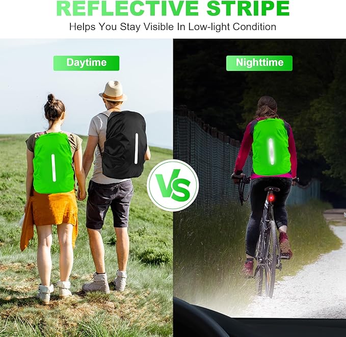 - [Rain cover for backpack]: Don't let a drop of water in. It can resist water of 2000mpa hydraulic pressure rate. Strap around middle of bag is excellent feature to secure in wind, 1 storage bag for easy carrying out