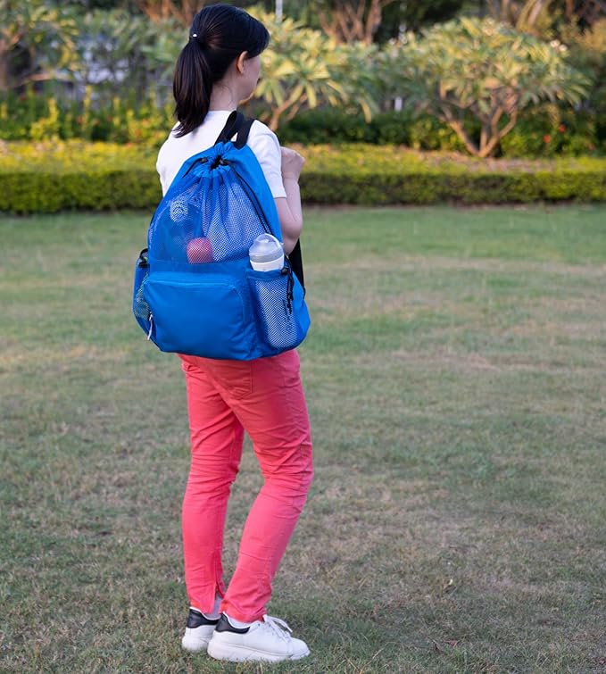- STRONG and DURABLE SWIM GYM BAG: Made of extra strong durable waterproof Nylon and open weave mesh this large capacity partial mesh bag ideal for any indoor or outdoor sports and leisure activities like swim, gym, soccer, camping, beach and so on.