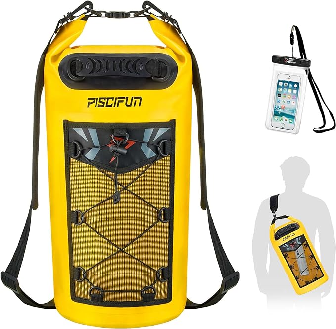 Piscifun Dry Bag, Waterproof Floating Backpack 5L/10L/20L/30L/40L with Waterproof Phone Case for Boating, Kayaking, Fishing
