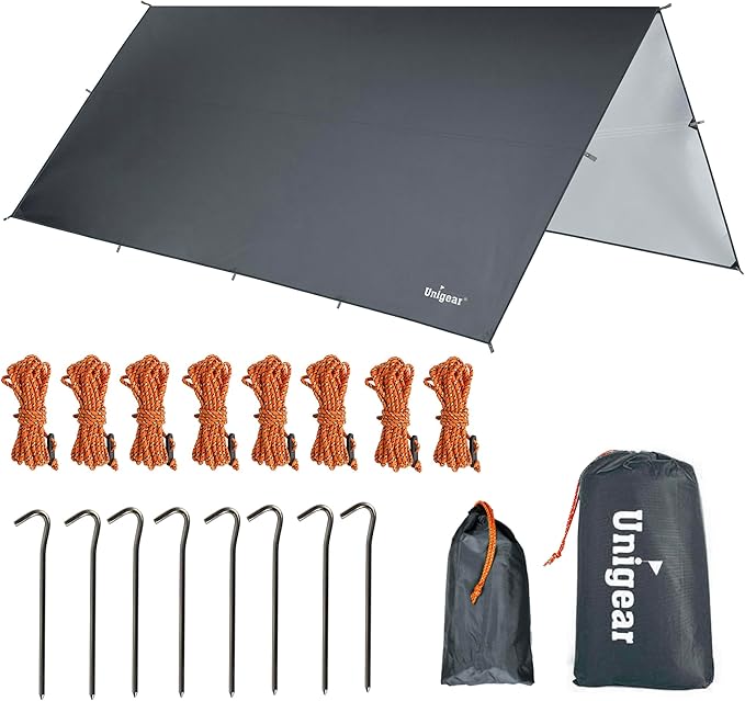 - BLOCK THE SUN: Coated with PU Inner layer, Unigear lightweight camping tarp can provide a UV protection in the sun. Perfects for hammock camping, backpacking, hiking, or other adventure