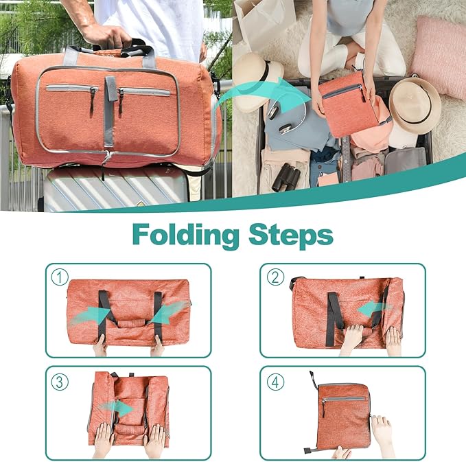 - Foldable and Spacious travel bag:The travel organizer bag can be folded into a really small size taking up so little space but opens up to have about 85L capacity of travel bags to use as a luggage bag in case that your suitcase swells. This travel duffel bag is designed to work best with bag packing cubes - to give you an organized lightweight travel experience.