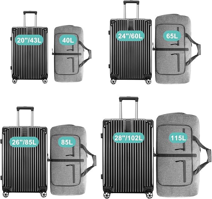 - Foldable and Spacious travel bag:The travel organizer bag can be folded into a really small size taking up so little space but opens up to have about 115L capacity of travel bags to use as a luggage bag in case that your suitcase swells. This travel duffel bag is designed to work best with bag packing cubes - to give you an organized lightweight travel experience.