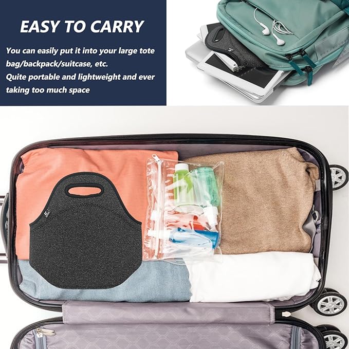 - FASHION DESIGN: This top-notch lunch tote bag is insulated by neoprene.It is Environmental and lead-free.Stain resistant and machine washable. High-quality zipper. The flat bottom will keep your bento lunch box and water bottle upright and will help you to prevent spillages.