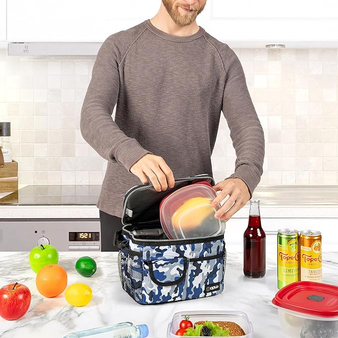 - CAMO LUNCH BAG FOR ALL: Our camo blue lunch box is perfect for carrying meals to work, school, hiking, and picnics. The insulated cooler bag is leakproof with vibrant color options, making our cooler lunch bag ideal for adults, men, women, kids, teens, boys, and girls. Passed CPSIA Lead, CSPA Phthalates & Cadmium Test - Manufacturer recommended age: Ages 3+.