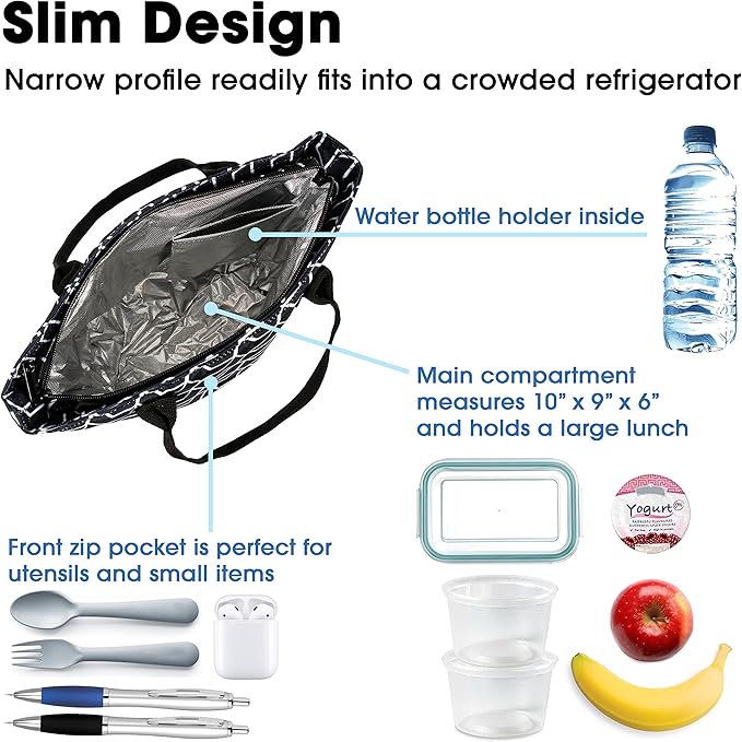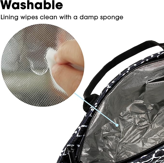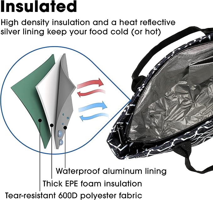 - Insulated — High density insulation and a heat reflective silver lining keeps your food cold (or hot) in this thermal lunch bag