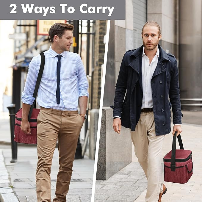 - Convenient Design-Lunch bag features an adjustable shoulder strap for easy carrying, whether you're headed to work or the gym. The double zipper design allows for quick access, while multiple pockets—including 4 additional compartments and 2 side mesh pockets—make it easy to store personal items. This lunch bag for women is both functional and stylish.