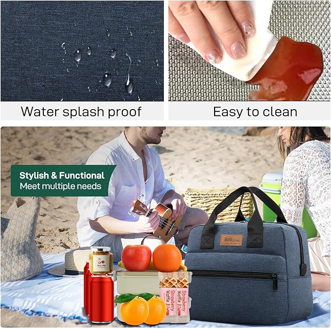 HOMESPON Insulated Lunch Bag for Women Men Lunch Box Cooler Lunch Tote for Work Picnic (Navy)