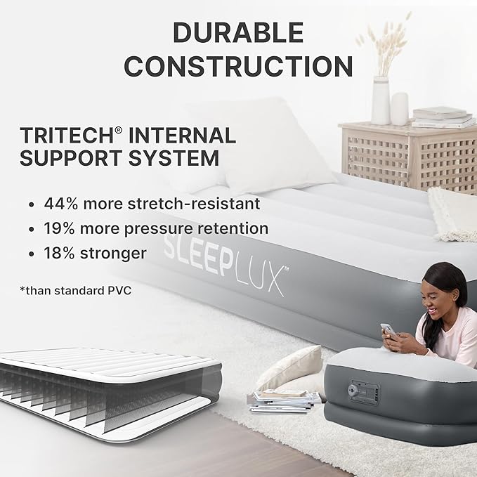 - GET A GOOD NIGHT'S REST: SleepLux's twin air mattress is designed with proprietary I-Beam construction. Composed of 3 durable layers, this inflatable mattress will keep its form and stay firm throughout the whole night.