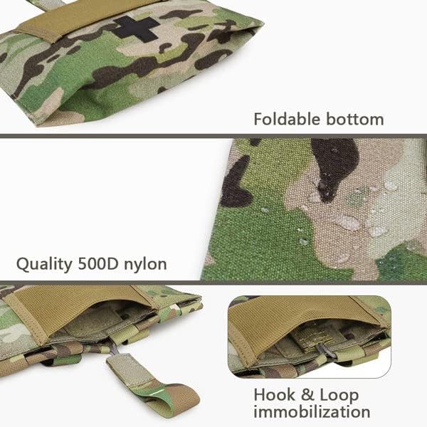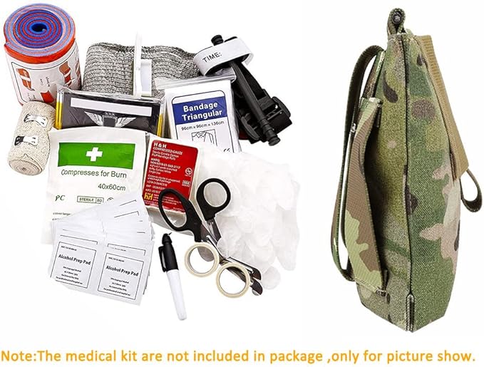 - Slim but can hold many necessary items,you can put 1 C.A.T Tourniquet 1 Israeli pressure bandage 1 pack of Celox 1 chest Needle D 1 chest seal and 1 set of latex gloves and etc in it.