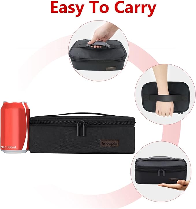 Gloppie Small Lunch Bag for Adults & Kids - Compact Insulated Lunch Box, Durable & Food-Grade Lining | Portable Cooler for Work, School, Travel (Black)