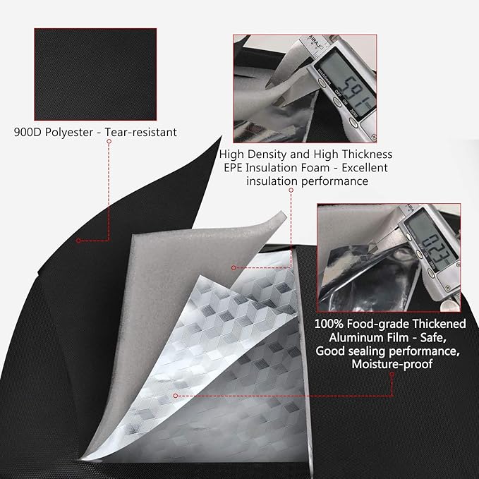 - 【Durable Construction】Waterproof 900D Fabric, Reinforced Metal Zippers, Enhanced Double-Stitching to Prevent Aluminum Film Ripping