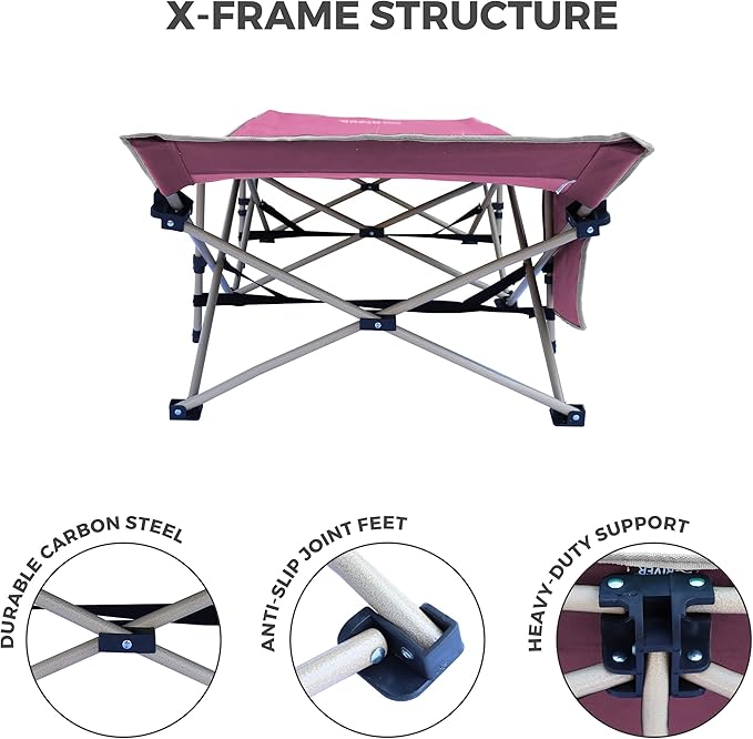 - EASY to SET UP and CARRY - Easy to use sleeping cots for adults; open by pressing down on the 4 frame joints to lock them in position; close by loosening the same joints while the cot is on its side and pulling the frame cords to fold the legs.