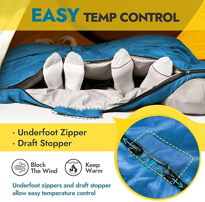 - ♥DESIGNED FOR EXTREME WEATHERS – Stay warm and cozy even when it's 42°F. Our all weather sleeping bags also have a waterproof, weather-resistant design to keep you warm even in extreme conditions and prevent you from any dampness - this is achieved through double-filled technology and S-shaped quilted design
