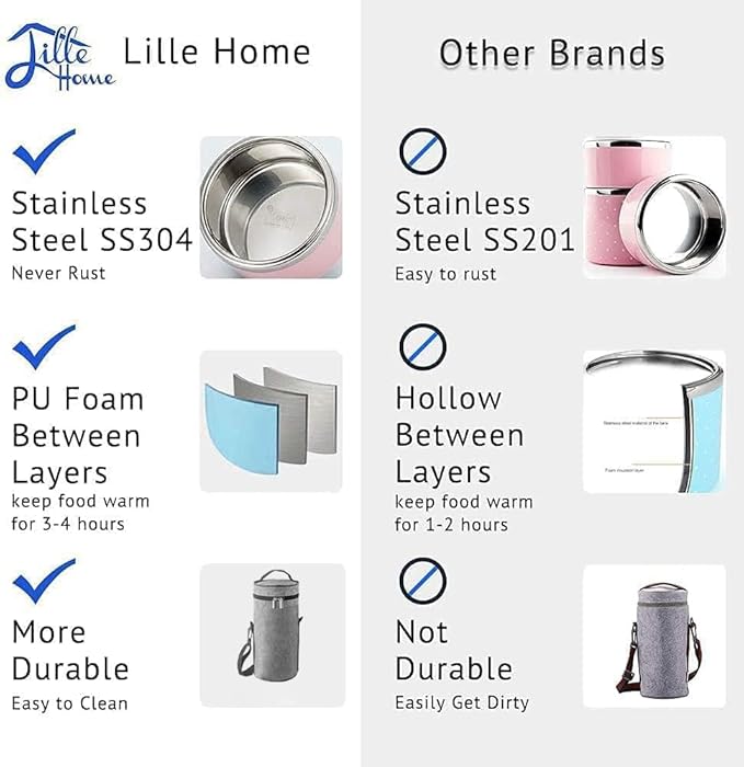 - Versatile Design: This 3-tier insulated bento container can be used for hot or cold food and offers endless possibilities for meal combinations. Perfect for portion control and meal planning