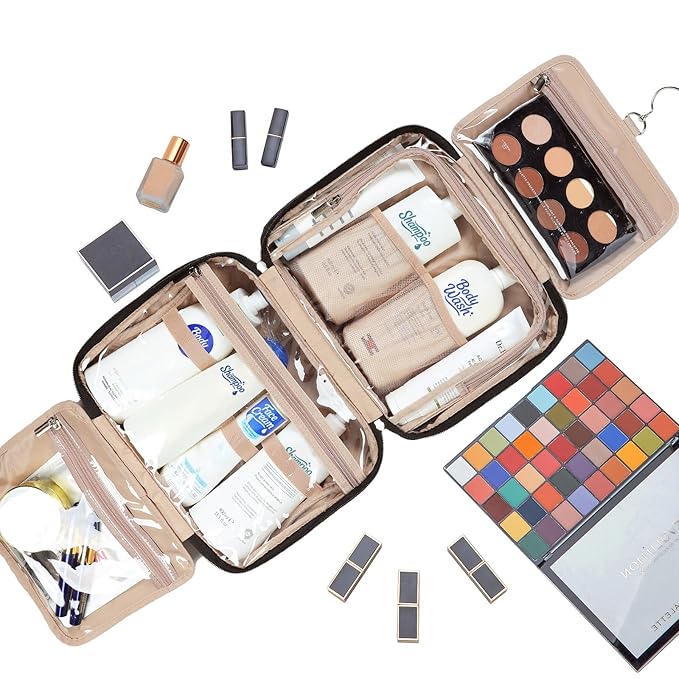 - STURDY HOOK DESIGN - Special U-shape zippers design, take out the toiletries or zip up the toiletry case quickly. No more unpacking, digging through one bag, and laying your stuff on the bathroom counter. Just hang the bag up, grab what you need, and put it back in it