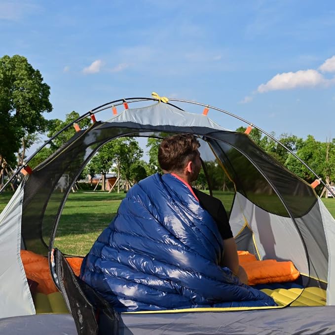 - ✅ LIKE HAVING A QUILT IN THE BACKCOUNTRY - Soft fabrics and lofty down insulation make it feel like sleeping under your comforter back at home, so you can get a good night's rest whether you're camping in the backcountry or traveling the country in a van. This might be your best night's rest under the stars. Degree range: 23 ~ 32 ~50F