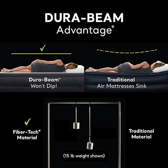 - Strength – Unlike traditional air beds that tend to sink or dip over time, our 16.5" Dura-Beam King Size Air Mattresses have top and bottom ring stability to prevent sagging and maintain shape.