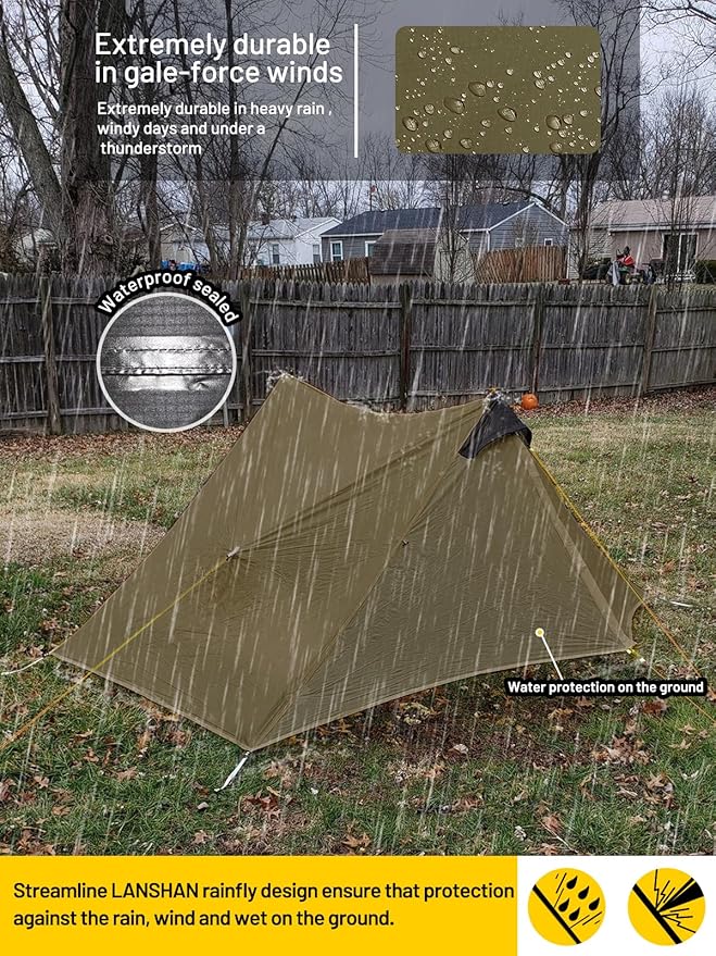 - LANSHAN tent is an ultralight backpacking tent. It built the walls out of no-see-um inner mesh for maximum ventilation and airflow, the rainfly and floor ensure reliable protection when damp weather tries to dampen you