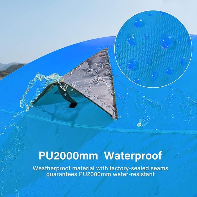 - 【Durable and High-Quality Material】: BISINNA Camping tent are made with high quality Material. The INNER TENT made with 190T Polyester Taffeta+B3 No-see-um Mesh; RAINFLY made by 190T Polyester Taffeta and guarantees PU2000mm water-resistant; TENT POLES made with lightweight and durable 7001 space aluminum, can supports most heavily wind rain .